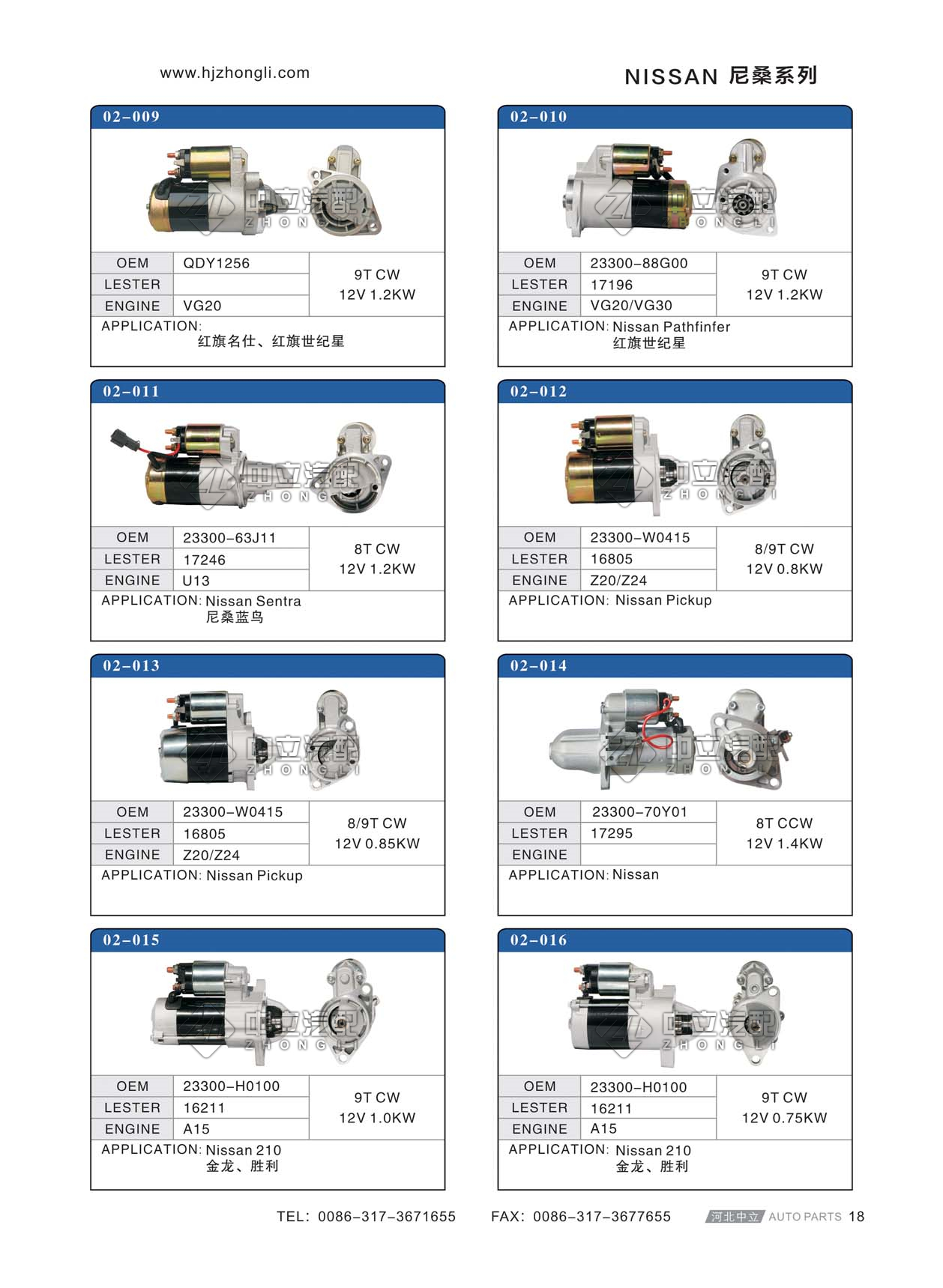 版權(quán)所有 © .河間市中立車輛附件廠 URL: http://zhlstarter.en.alibaba.com Copyright © All right reserved.Hejian Zhongli Auto Parts Factory ADD: Shicun Industrial Dist Area.Hejian City,Hebei Province.China.TEL:0317-3671655 FAX:0317-3677655 WEB:m.zhaorannote.cn