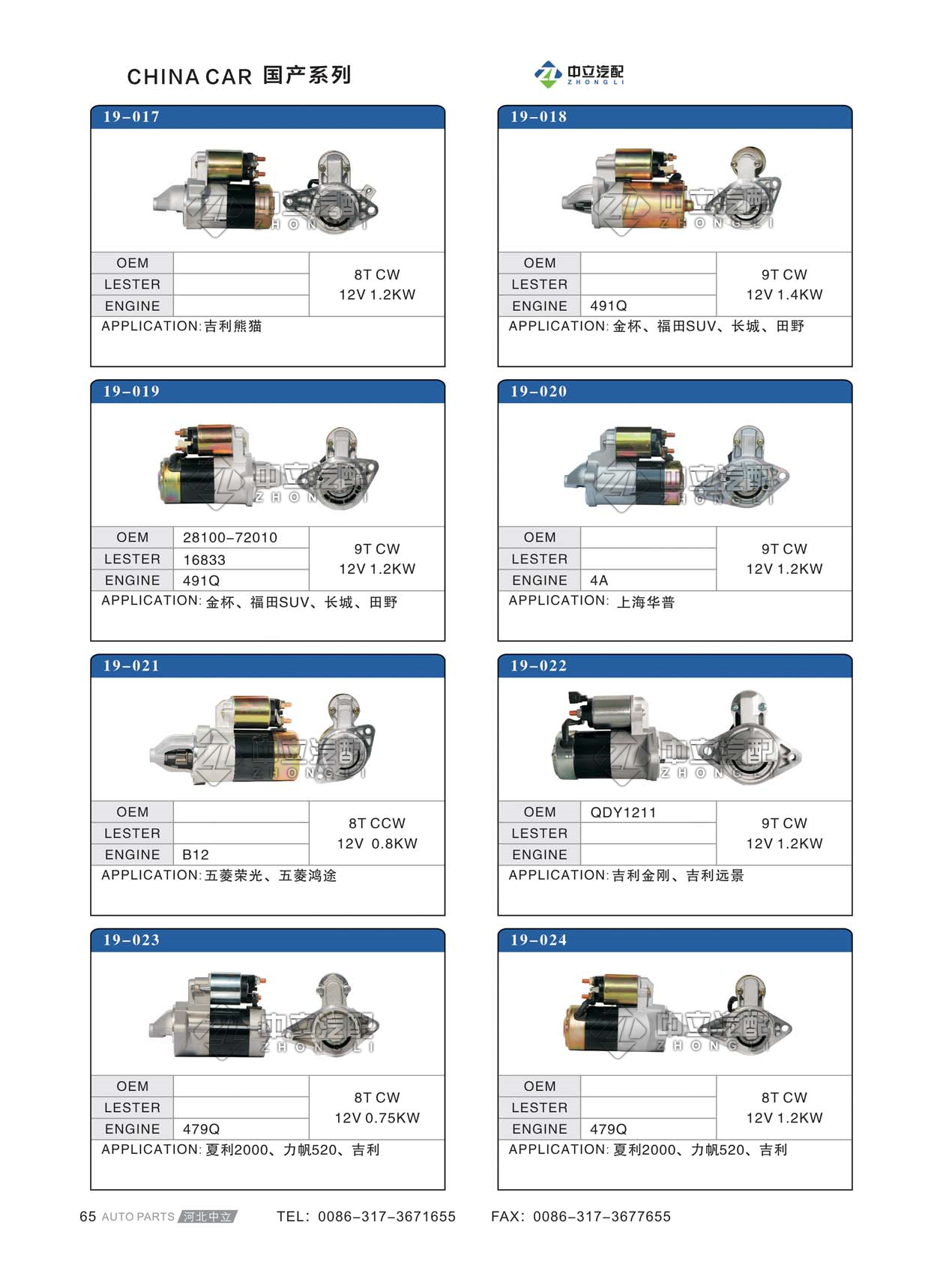 版權(quán)所有 © .河間市中立車輛附件廠 URL: http://zhlstarter.en.alibaba.com Copyright © All right reserved.Hejian Zhongli Auto Parts Factory ADD: Shicun Industrial Dist Area.Hejian City,Hebei Province.China.TEL:0317-3671655 FAX:0317-3677655 WEB:m.zhaorannote.cn