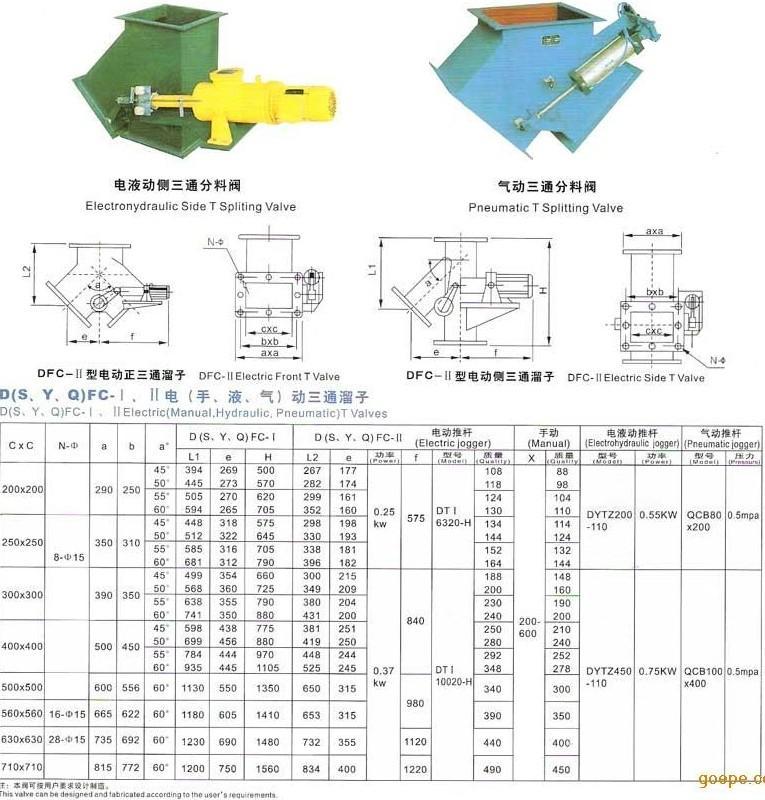 產(chǎn)品簡(jiǎn)介: 三通分料器: 三通分料器別名三通卸灰閥。三通分料器有電液動(dòng),電動(dòng),氣動(dòng),手動(dòng)等幾種啟動(dòng)方式,所以又叫電液動(dòng)三通分料器,電動(dòng)三通分料器,氣動(dòng)三通分料器,手動(dòng)三通分料器??梢灾苯訉⑸喜糠ㄌm接在膠帶......